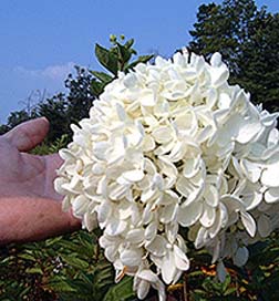 plants are in flower. Hydrangea PeeGee boasts 6 - 8 inch long white blooms that are 3 - 4 inches wide at the base. Excellent