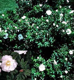 scented blossoms, which will grow in full sun as well as dappled shade. Rosa rugsoa 'Alba' flowers June to August with the